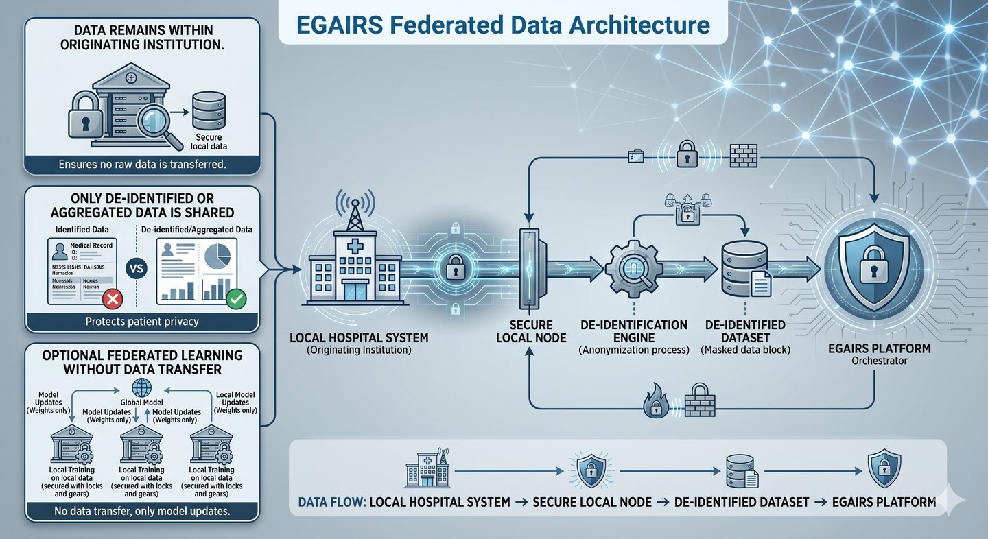 EGAIRS adopts a federated data architecture, ensuring: